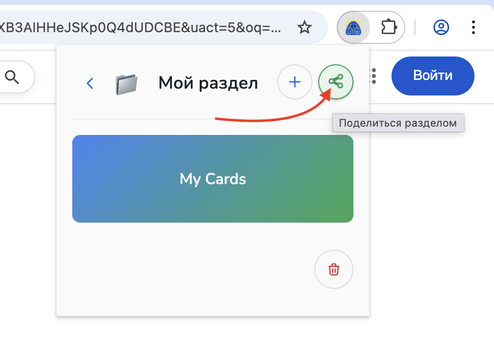 Нажмите указанную кнопку, чтобы поделиться разделом. Будет создана ссылка, которую можно будет открыть и добавить раздел в приложение.