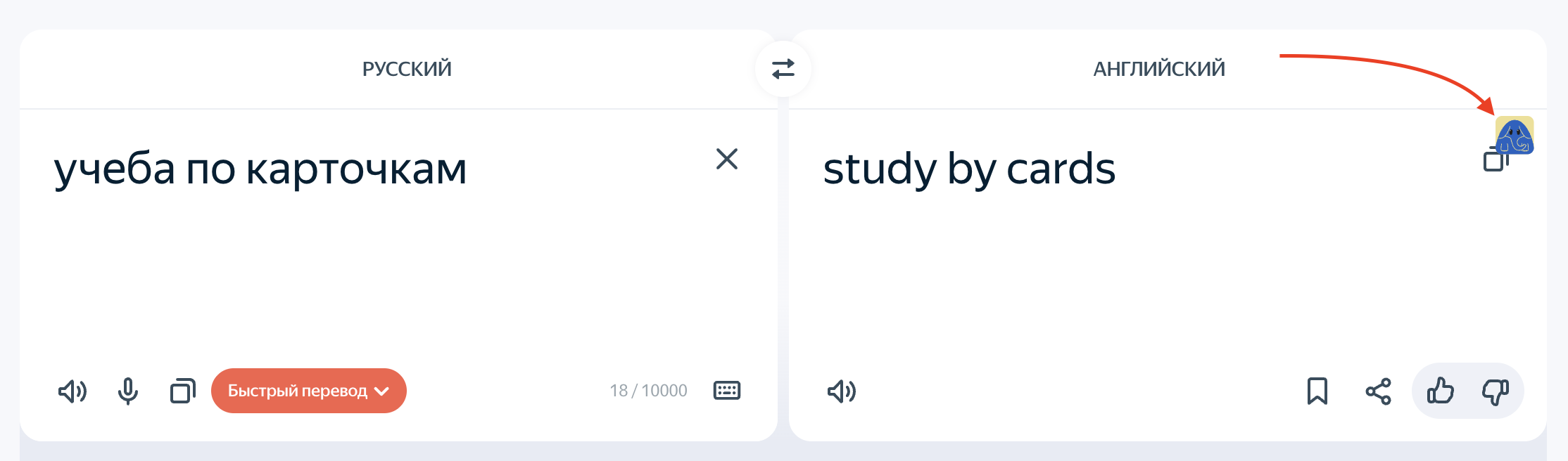Если вы используете яндекс переводчик, то при переводе можно нажать на показанную кнопку. Лицевая и оборотная стороны карточки заполнятся автоматически.